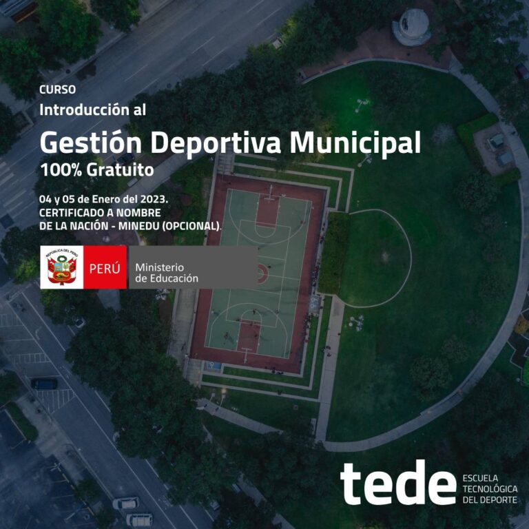 Al finalizar el programa, el estudiante recibirá el certificado del Curso de Introducción en Gestión Deportiva Municipal otorgado por la Escuela Tecnológica del Deporte a nombre de la nación (MINEDU).